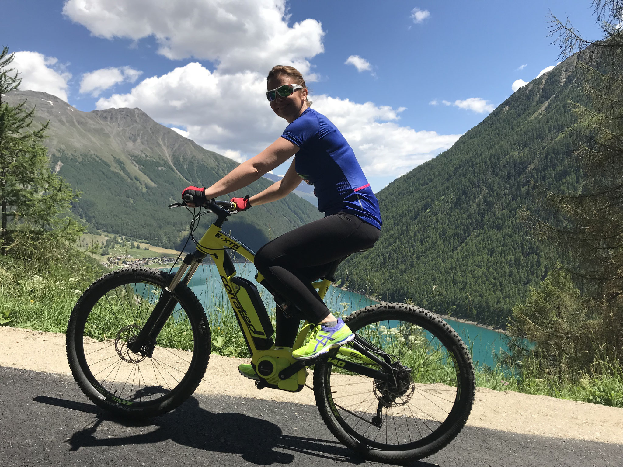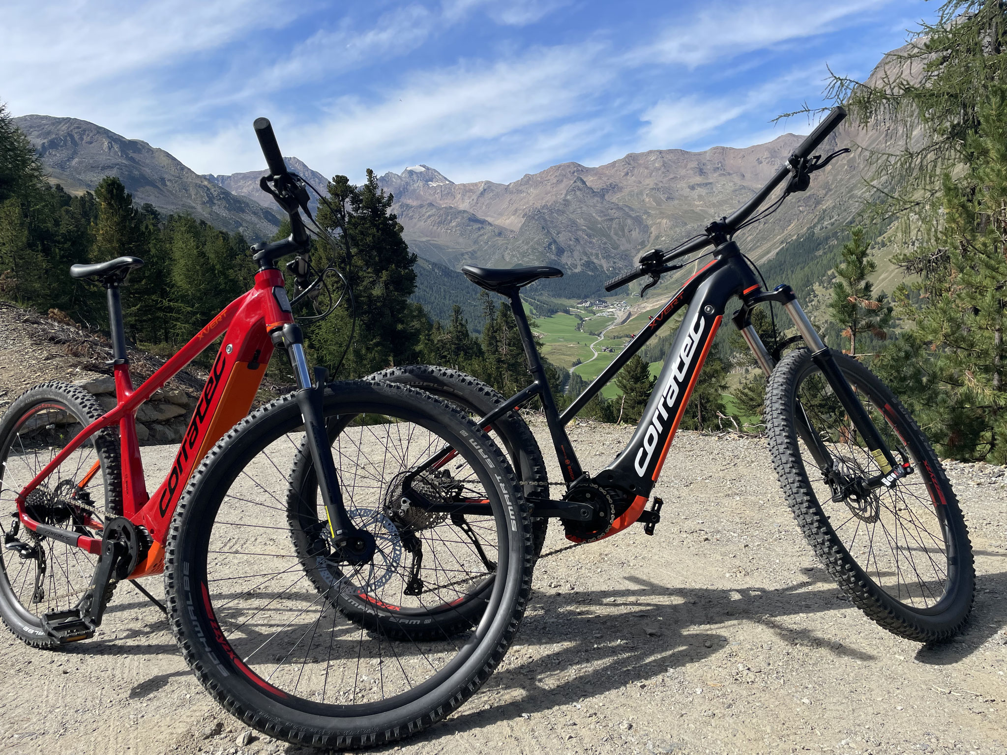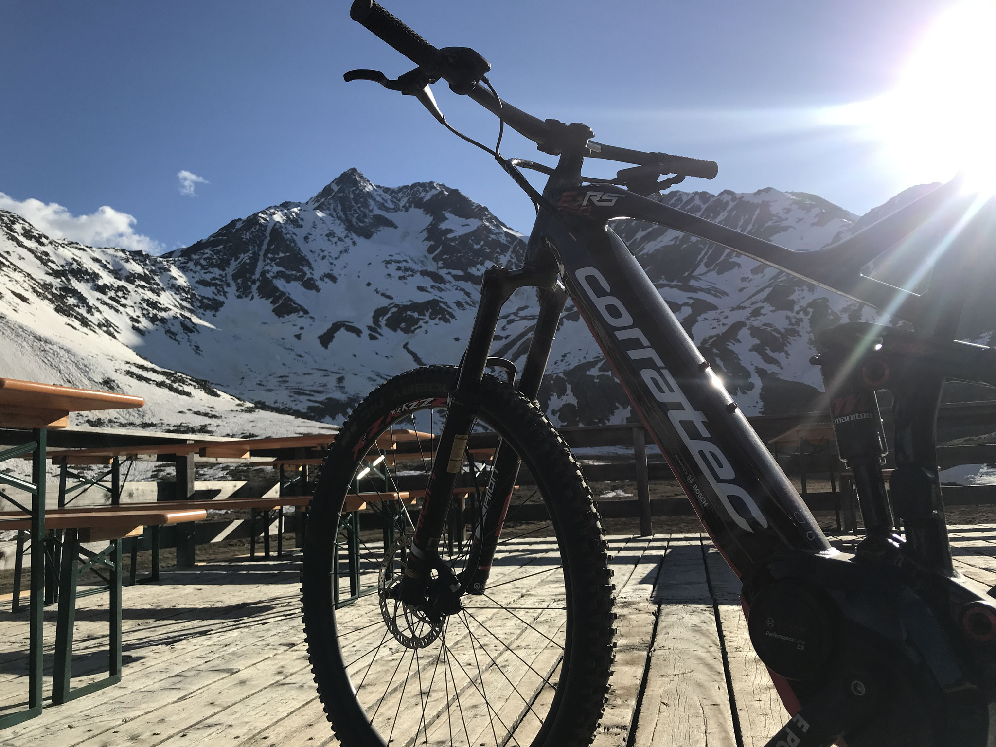 Da wir doch im 2.000 Meter hoch gelegenen Kurzras sind, sind E-MTB natürlich eine super Sache. Mit E-Bikes kommt man einfach weiter und schwitzt dabei weniger.