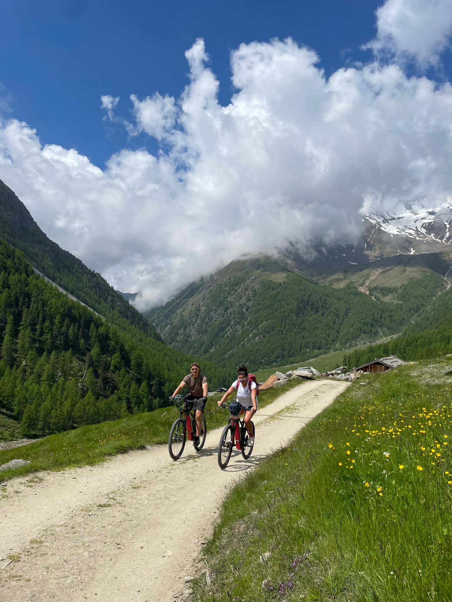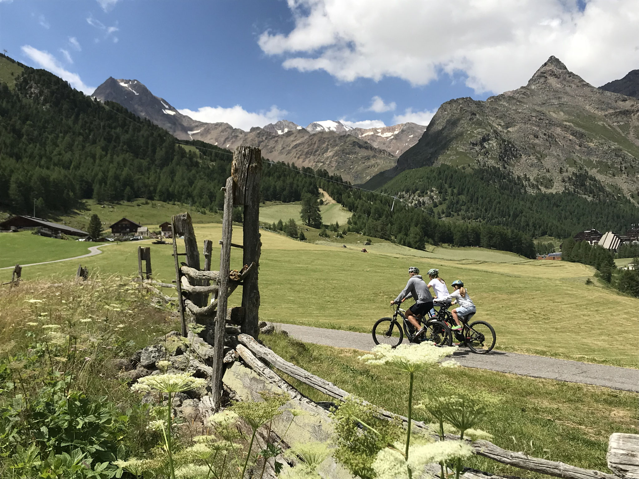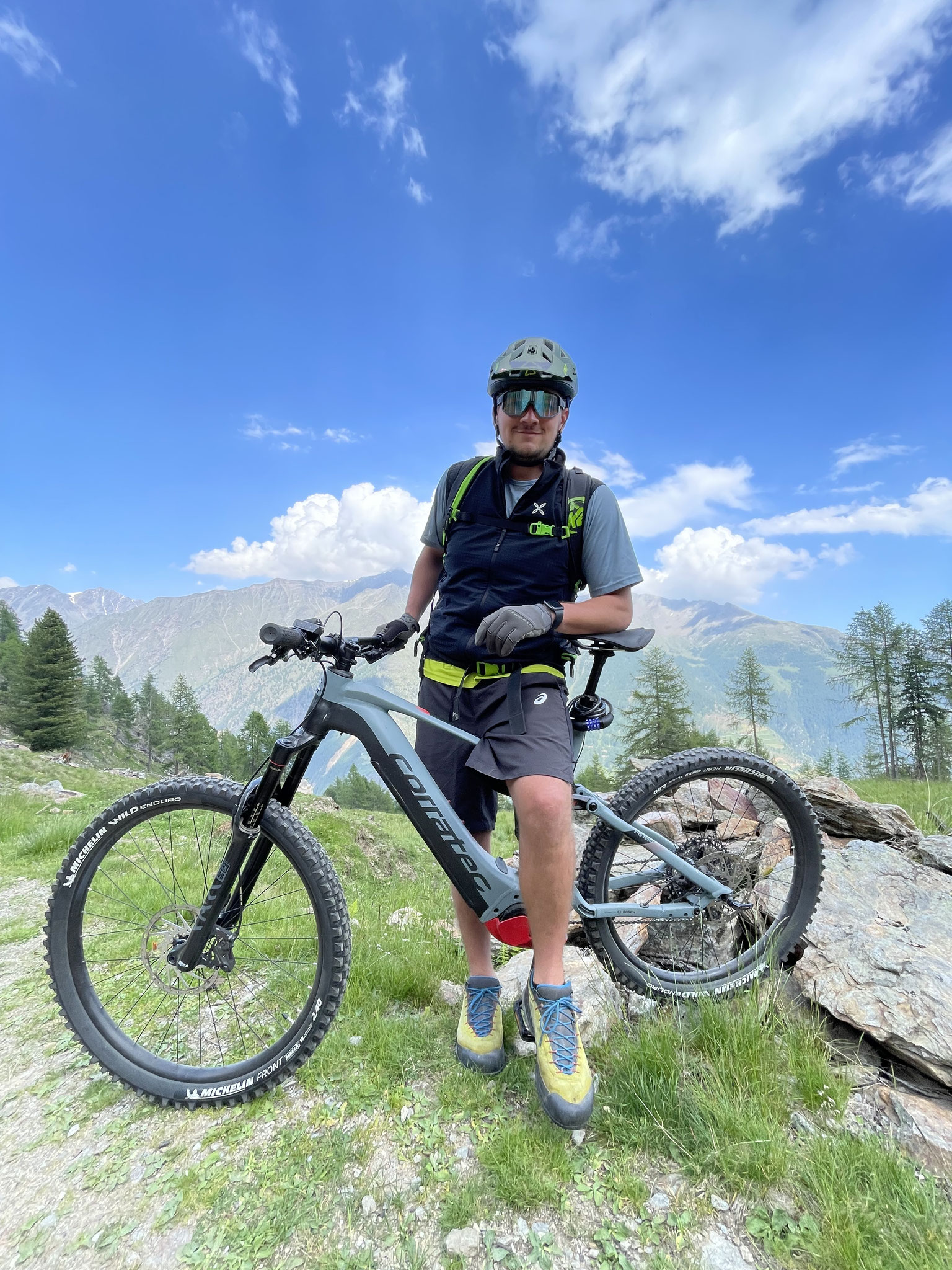 Da wir doch im 2.000 Meter hoch gelegenen Kurzras sind, sind E-MTB natürlich eine super Sache. Mit E-Bikes kommt man einfach weiter und schwitzt dabei weniger.