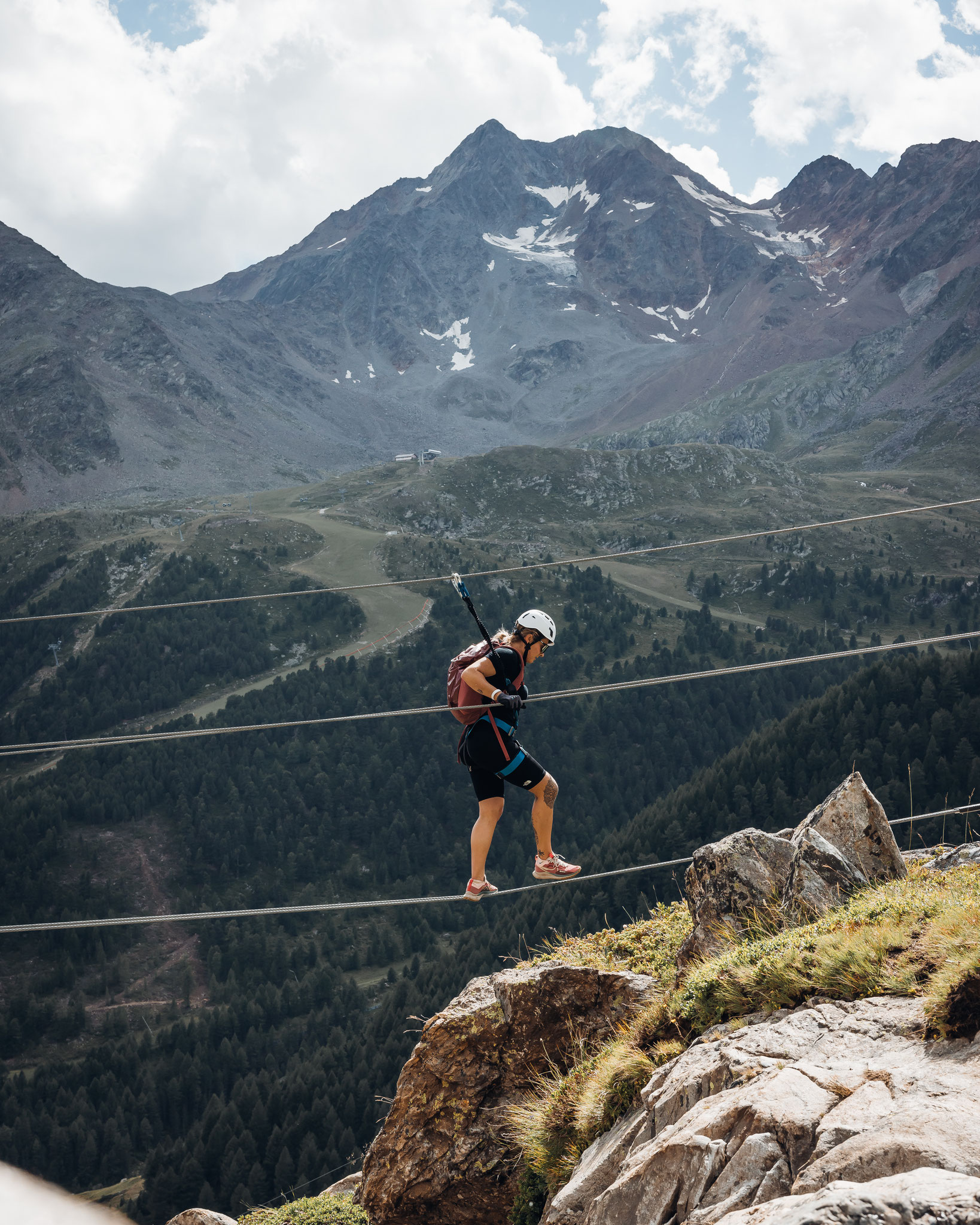 Der Klettersteig „Larix“ (lat. Lärche) und der parallel dazu verlaufende Erlebniswanderweg „Alpin Trail“ in Kurzras kreuzen sich an mehreren Stellen und so können z.B. Familien gemeinsam starten,